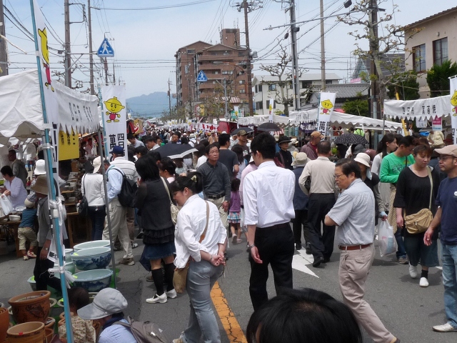 毎年、5月の第2土日には、「四日市ばんこまつり」が開催され、窯元や卸、店などがテントで構えて、安く販売します。